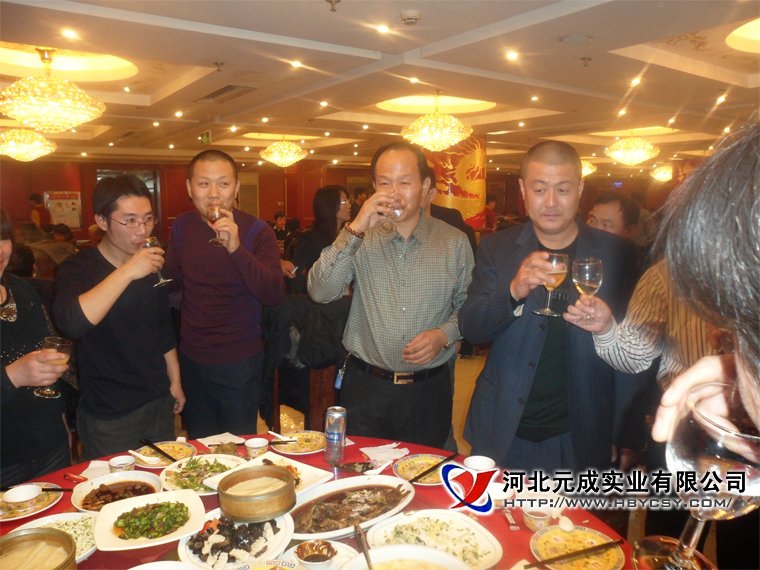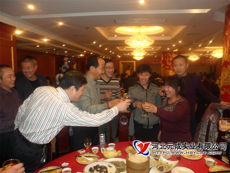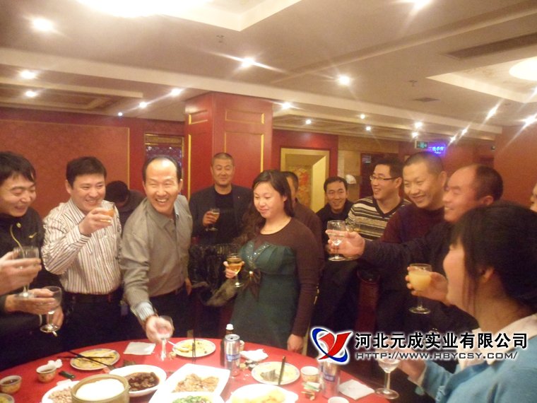 董事长携各部门经理向一线员工敬酒  元成员工欢聚一堂